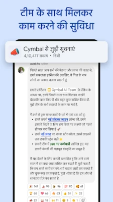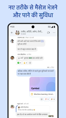 Chat, आपकी टीम के हर सदस्य को करीब लाने और लक्ष्य हासिल करने में मदद करने के लिए डिज़ाइन किया गया है। चाहे आप किसी सहकर्मी, एक छोटे समूह, या अपनी पूरी टीम के साथ बातचीत करना चाहते हों, Chat एक सहज अनुभव प्रदान करता है। अपनी उपलब्धता या व्यस्तता के अनुसार कस्टम स्टेटस अपडेट करके टीम को सूचित करें, ताकि सभी को पता हो कि आपसे कब संपर्क किया जा सकता है। विचारों को बेहतर ढंग से व्यक्त करने के लिए ऑडियो और वीडियो मैसेज भेजें, जो टेक्स्ट से कहीं ज़्यादा प्रभावशाली होते हैं। 'हडल' सुविधा के ज़रिए आप कभी भी, कहीं भी वास्तविक समय में तुरंत मीटिंग शुरू कर सकते हैं, जिससे फैसले तेज़ी से लिए जा सकें।