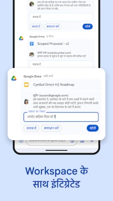 Chat के साथ टीम के बीच संवाद और सहभागिता को एक नए स्तर पर ले जाएं। यह Gemini एआई की शक्ति से संचालित एक स्मार्ट मैसेजिंग प्लेटफ़ॉर्म है जो आपके कार्यप्रवाह को सुव्यवस्थित करता है। Chat आपकी बातचीत से महत्वपूर्ण बिंदुओं को अपने आप सारगर्भित कर आपको अपडेटेड रखता है, ताकि आप कभी कोई ज़रूरी जानकारी न चूकें। 120 से अधिक भाषाओं में त्वरित अनुवाद की सुविधा के साथ, भौगोलिक दूरियाँ मिट जाती हैं और वैश्विक टीमें एक-दूसरे से आसानी से जुड़ पाती हैं। साथ ही, एआई-पावर्ड सर्च के ज़रिए आप अपनी ज़रूरत की जानकारी चुटकियों में खोज सकते हैं, और यह सुनिश्चित करता है कि पूरी टीम प्रमुख एक्शन आइटम पर एक साथ काम कर रही है।