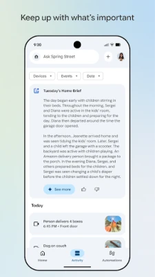एक अद्यतन डिज़ाइन और बेहतर सुव्यवस्थित इंटरफ़ेस के साथ, Google Home आपके स्मार्ट उपकरणों के प्रबंधन को असाधारण रूप से आसान बनाता है। आप अपने सभी डिवाइस को डैशबोर्ड में समूहों में व्यवस्थित कर सकते हैं और सेटिंग्स को बिना किसी परेशानी के नेविगेट कर सकते हैं। घर में घटने वाली हर महत्वपूर्ण गतिविधि की तुरंत जानकारी प्राप्त करें, जिससे आप हमेशा सूचित और तैयार रहें।