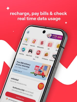 नई Vi सिम कार्ड ऑर्डर करने, अपनी सिम को Vi पर पोर्ट करने या eSIM को सक्रिय करने जैसी सभी सिम सेवाओं को Vi Recharge App के माध्यम से आसानी से पूरा करें। अपने डेटा बैलेंस और उपयोग को ट्रैक करें, डेटा रोलओवर का लाभ उठाएं और Vi इंटरनेशनल रोमिंग पैक्स के साथ विदेश यात्राओं के दौरान भी जुड़े रहें। बिजली, पानी और एलपीजी गैस सिलेंडर के बिलों का भुगतान भी अब पहले से कहीं ज़्यादा आसान है। Vi शॉप पर वीआईपी नंबरों और विभिन्न छूटों का लाभ उठाएं, साथ ही Vi मूवीज़ एंड टीवी पर नवीनतम मनोरंजन सामग्री देखें और Vi गेम्स पर खेलकर पुरस्कार जीतें। किसी भी सहायता के लिए, Vi Care और AI चैटबॉट Vic 24x7 आपकी सेवा में उपलब्ध हैं, जिससे आपका अनुभव हमेशा सहज बना रहे।